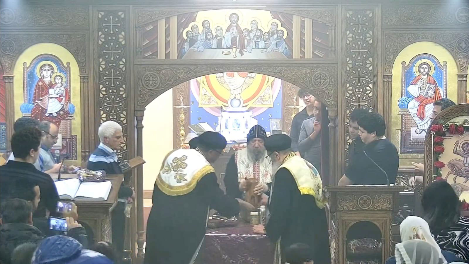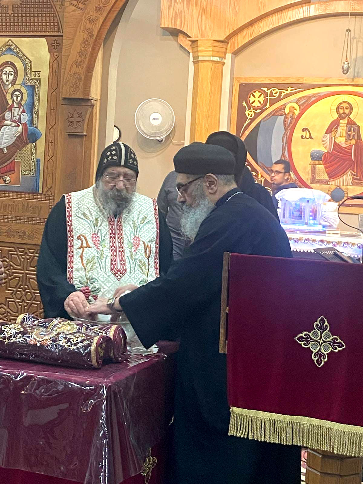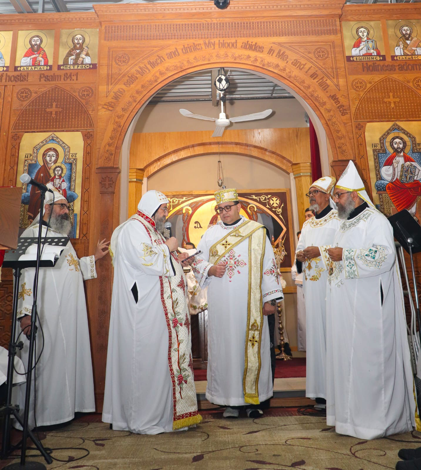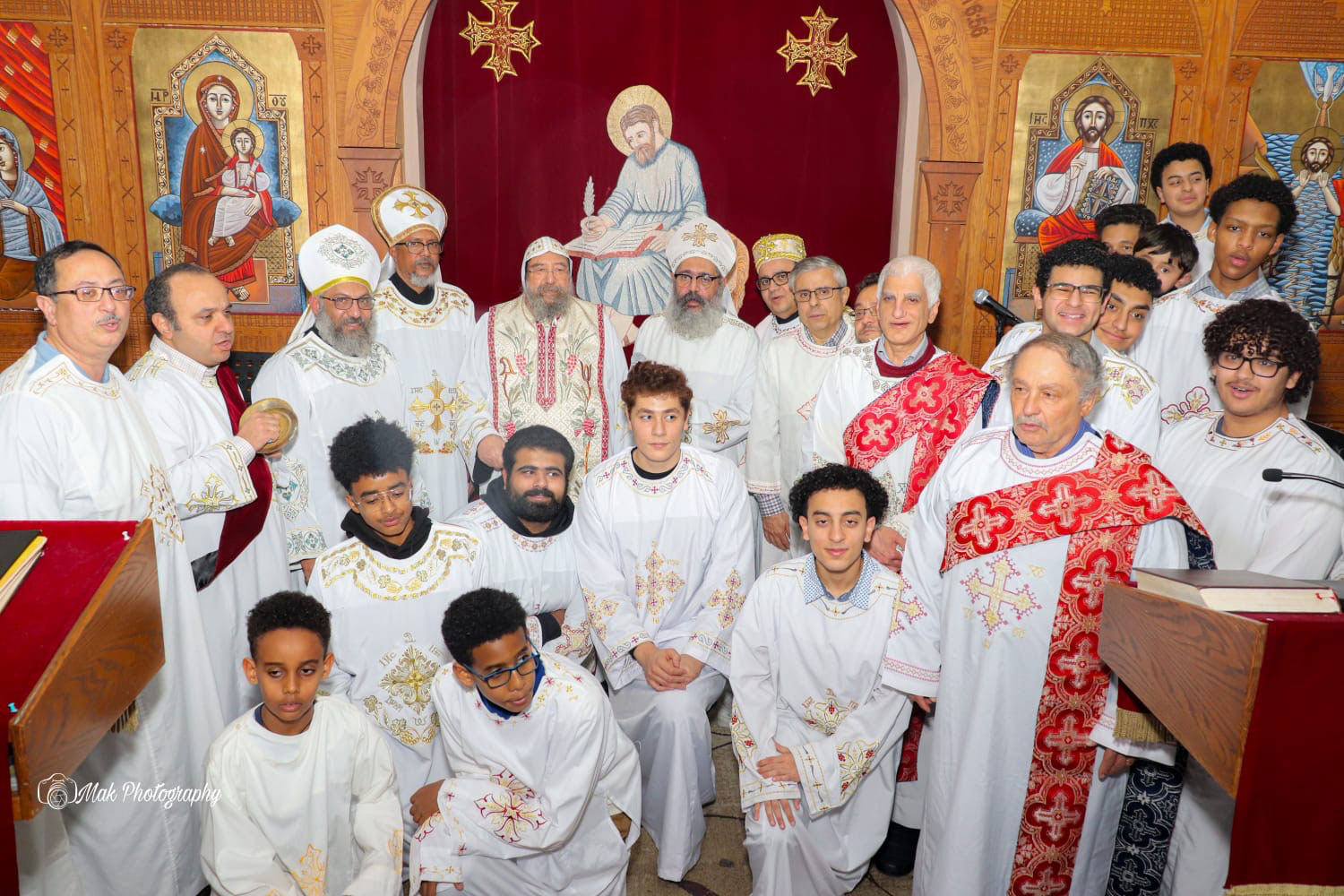 ٢- صلاة القداس يوم الاحد حيث قام بسيامة رتب شماسية مختلفة كما قام برسامة الدكتور أشرف حبيب جبران برتبة دياكون